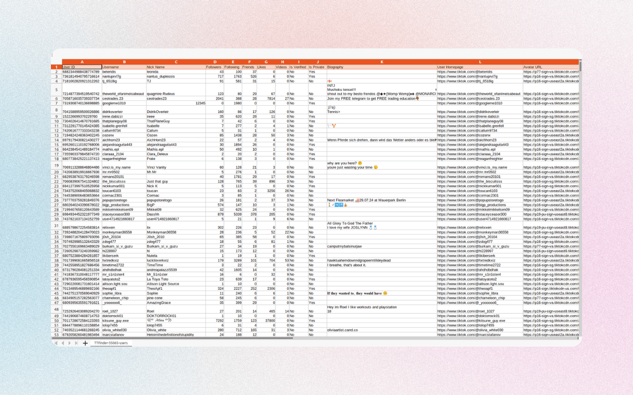 | Username | The public name that a TikTok user chooses to represent themselves. |